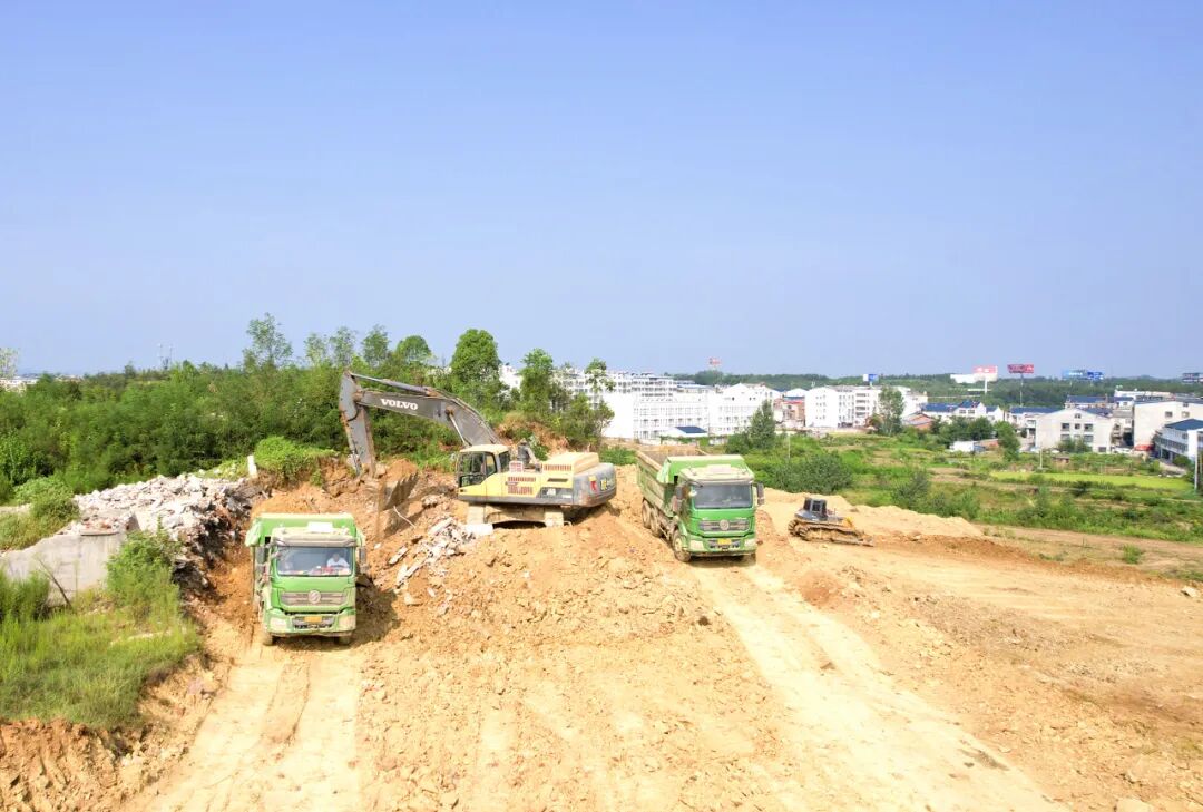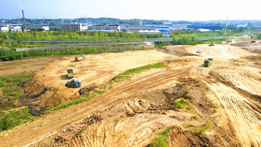 8月24日,在随州何店高质量发展示范区随州东湖高新产业园施工现场,30余台大型工程机械来回穿梭,一派热火朝天的施工景象。