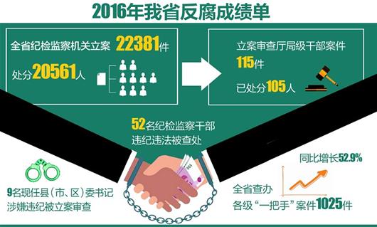 我省亮出2016年反腐成绩单 查办“一把手”案件比上一年增一半