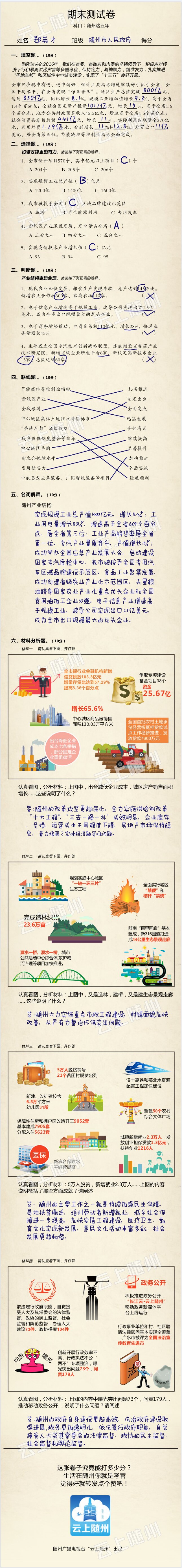 这张试卷火啦!考生是随州市长