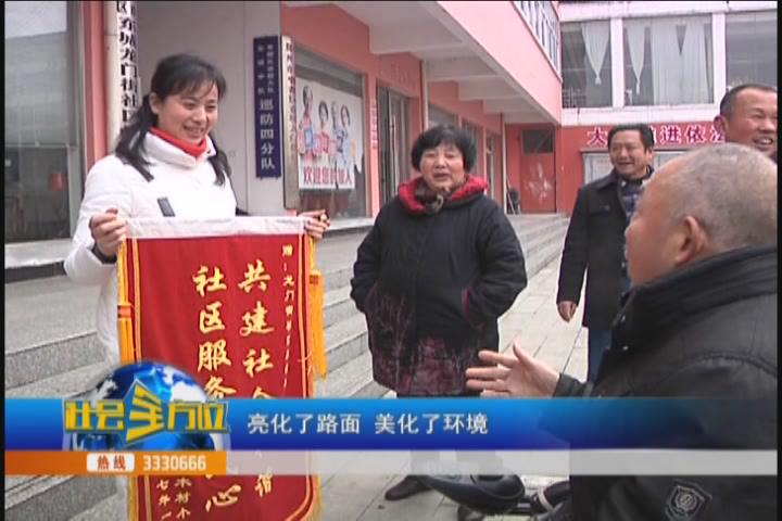 同期声:我们应该谢谢你们,我们本来就是应该为你们服务的,谢谢你们,为我们带来了方便,应该做的,亮化了路面,美化了环境。