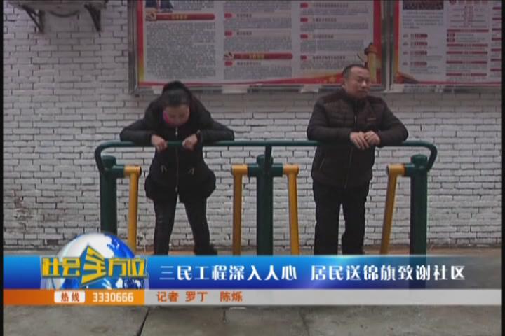 【采访】龙门街社区党委副书记 王春玉:我们每年在三民工程这个方面,尽量给居民做一些实事好事,尤其是今年给木材小区成立一个东壕街党支部,我们把这个小区重新规划了一下,老百姓能够用送锦旗这个方式表达对社区的关心,对于我们社区来讲,我觉得很激动,其实我们做三民工程是应该做的,但是居民用这样的方式来表达他们的感激之情,我们很激动,也激励我们在明年会逐步把三民工程深入人心。