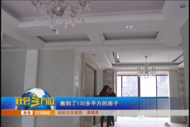 (采访:齿轮社区居民 龚群英)在一楼,家里有老人,133.11平方,对, 三室两厅两卫,对,这个是客厅,这个是饭厅,这是个入库花园,这是个餐厅,采光很好,就是看中这采光,给了首付,那边房子的钱抵这边的十六万多,对,还贷,每个月还贷。 两个卫生间,对,两个,对,又宽。 四口人,老房子当时是三口人,我婆婆一直在武汉,接过来,对。 感谢政府2016年做了十件实事,我们老百姓得到实惠,我们的生活环境改善了,居住环境改善了,