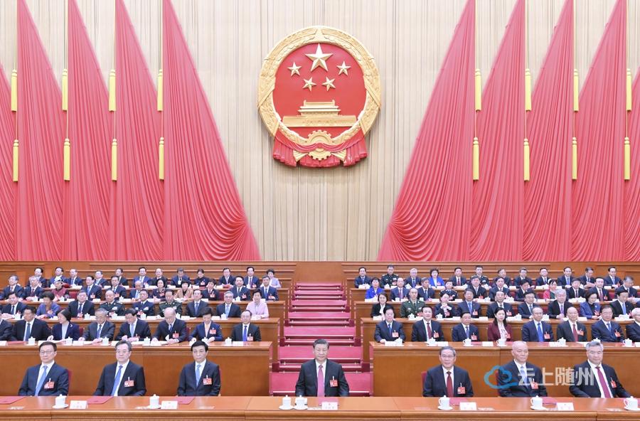 3月11日,第十四届全国人民代表大会第二次会议在北京人民大会堂闭幕。党和国家领导人习近平、李强、王沪宁、蔡奇、丁薛祥、李希、韩正等在主席台就座。新华社记者 谢环驰 摄