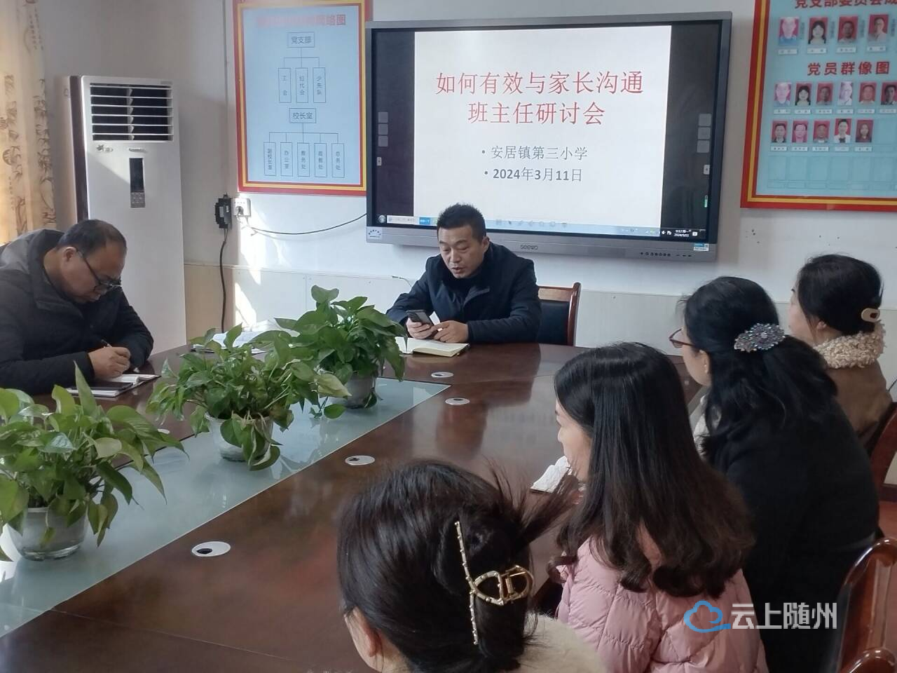 近日,安居镇第三小学召开了班主任研讨会,会议就如何有效与学生家长沟通为主题进行讨论。政教处组织分班级、年级推选班主任发言,交流经验。