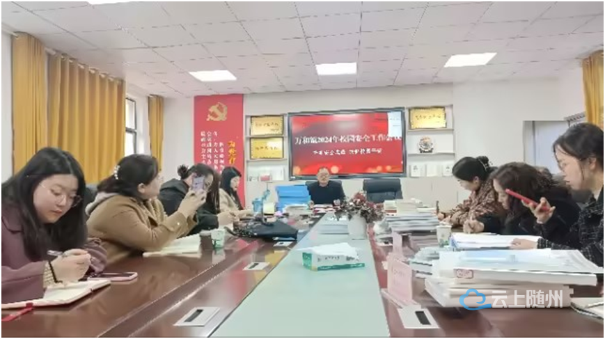 万校长在会上传达随县教育局校园安全工作会议精神,对压实责任,紧盯“平安校园”创建目标,严格落实安全管理制度、围绕“法制、安全”两条主线,加强法制安全宣传教育和日常管理,落实各项应急演练和相关课程、积极开展校园安全隐患大排查大整治、校园周边环境综合治理、防溺水三大行动、坚决落实校园封闭管理、保安人员配备、校园监控及一键报警器、护学岗四个100%建设等进行详细阐明和具体安排。