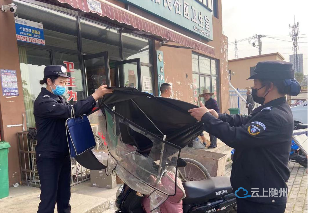 非法加装车辆伞棚存在极大的安全隐患,在雨雪天气、刮风、拐弯或路面湿滑的情况下会影响车辆的可视范围、活动性和可控性,增加交通事故的发生率。裕民社区工作人员联合社区网格警员,以包队包片的形式在辖区进行电动车、摩托车行驶安全专项整治行动。