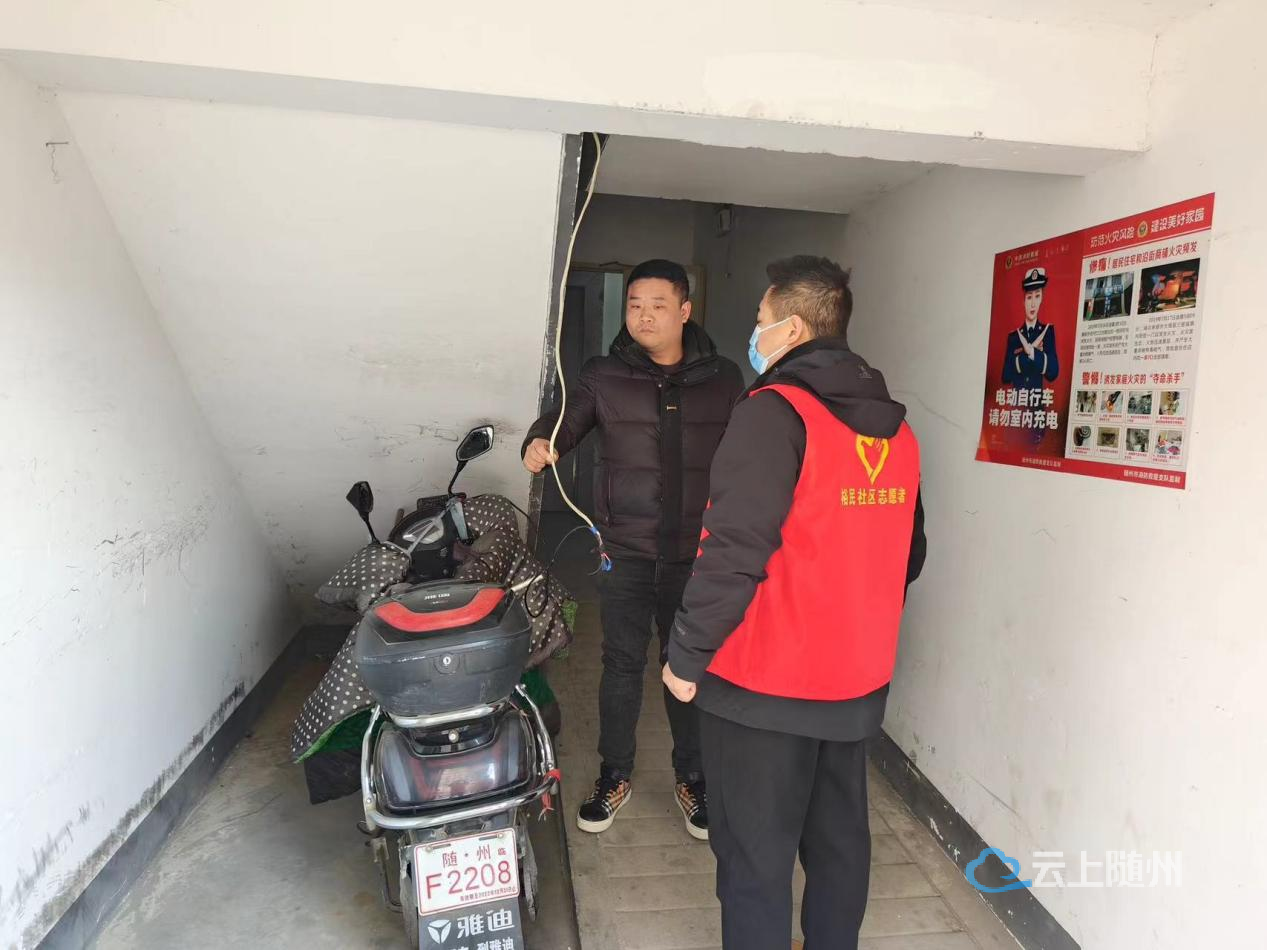 同时,社区网格员和物业对辖区内“飞线充电”整治情况组织进行“回头看”行动走访排查安全隐患,清理楼道乱堆乱放的杂物和车辆,对飞线充电的户主上门进行安全知识宣讲,劝导其拆除充电线,将电动车停放在指定区域进行充电。
