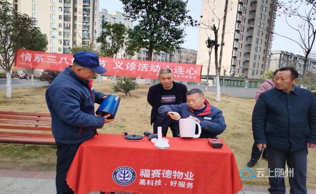 在新城大自然小区,居民们早早拿着热水壶、风扇等小家电来到志愿者徐师傅的台面前。
