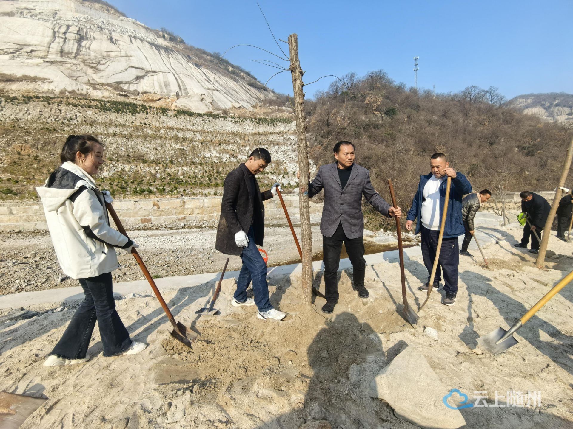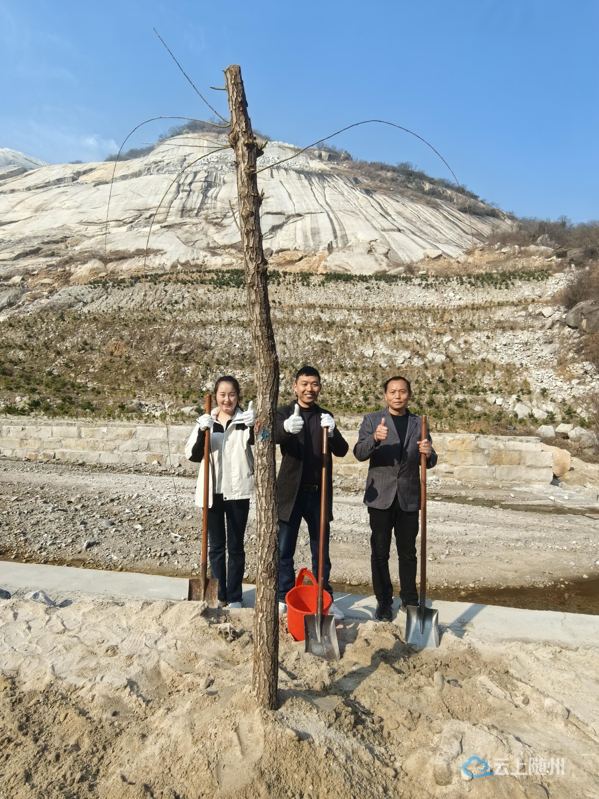 活动现场,大家手持铁锹、锄头、挖坑挖土,扛苗散苗、扶苗培土,干劲十足,不亦乐乎。