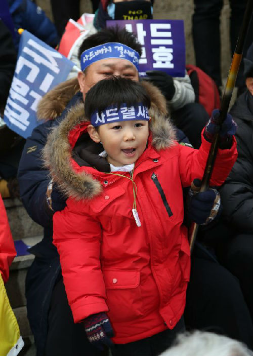 韩国民众集会反对部署“萨德”系统。新华社发