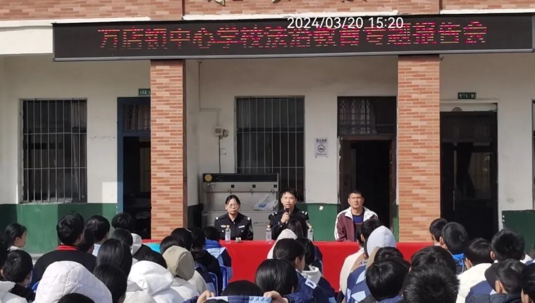3月20日,万店派出所利用学生在校时机,到万店镇中心学校开展法治专题讲座。从校园霸凌、交通安全、防性侵、禁毒以及反邪教等相关安全知识方面进行了多维度、全方位讲解,发放宣传手册共计700余份。此次活动增强了同学们的法治观念,提高了青少年的自我保护意识。