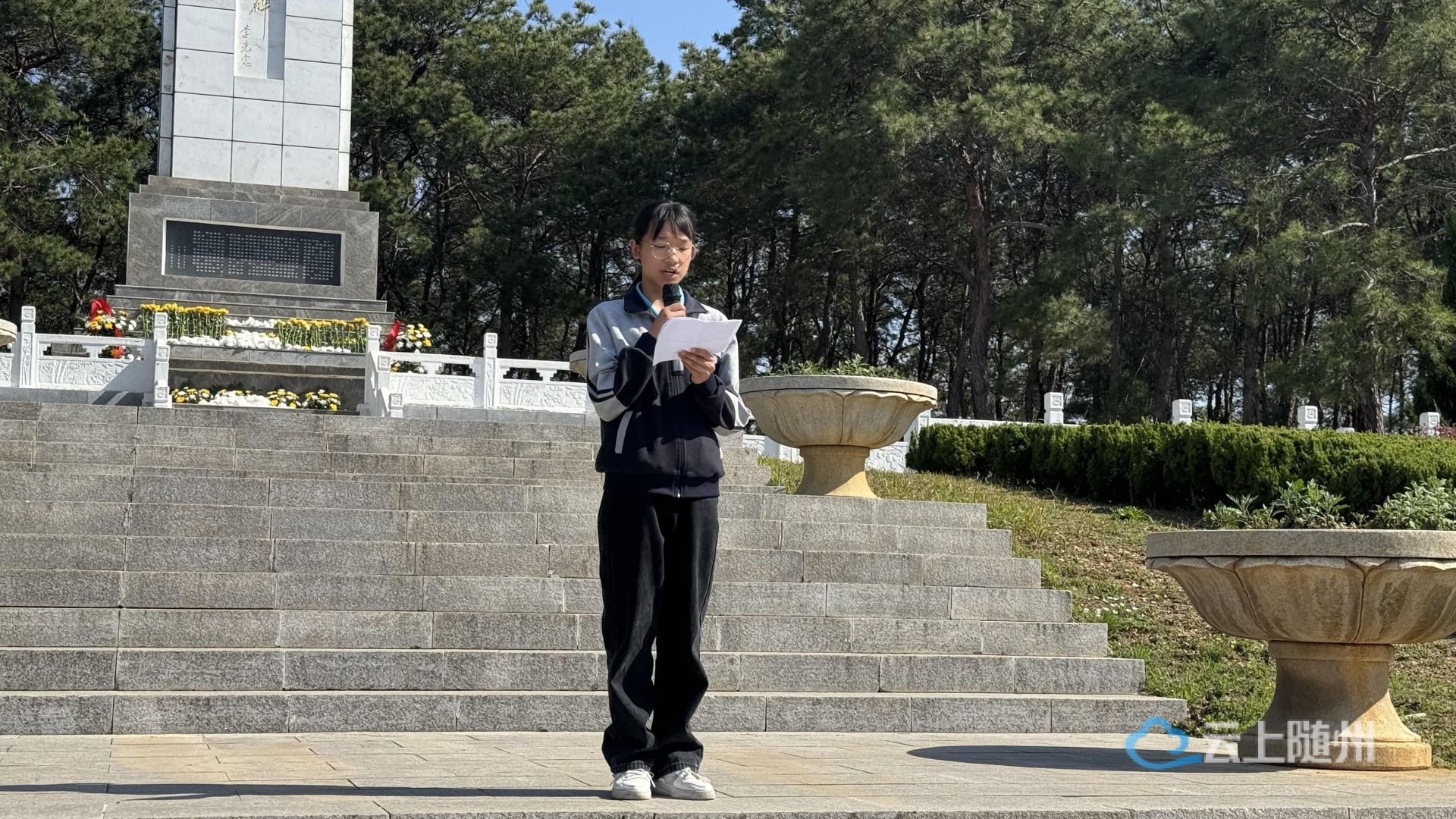 来自603班的杨梦婷同学发言,倡议大家不断学习革命先烈追求真理、立场坚定的优秀品质;学习他们奋勇向前、乐于奉献的高尚情操;继承先烈遗志,积极进取、勇于创新,争做新时代好少年!