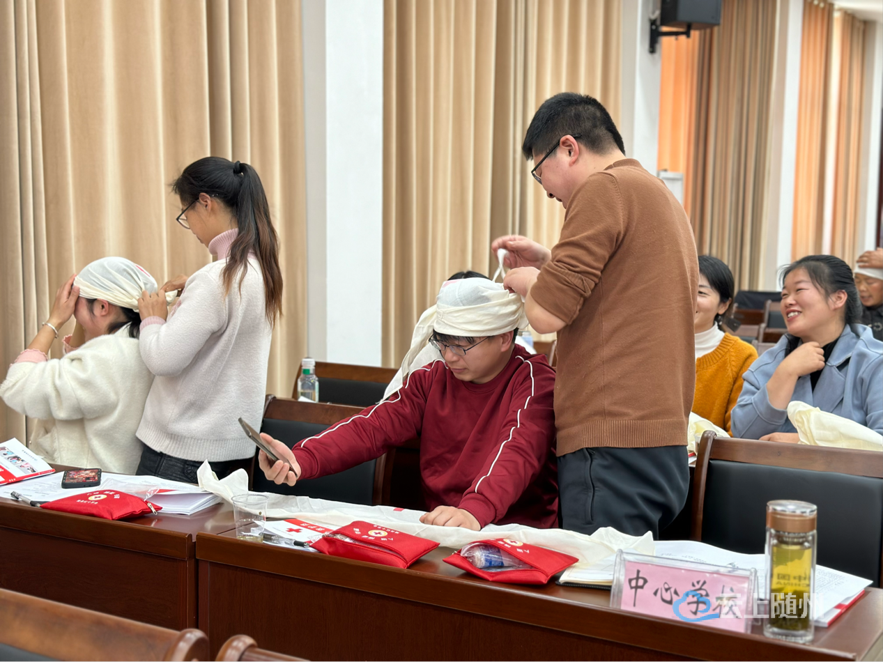 培训会上,中国红十字会救护培训师、湖北省中毒与职业病联盟重金属中毒救治专业委员会委员、随州市重症医学分会委员、随州市重症医学专业医疗质量控制中心专家组委员魏天天、随州市急救中心工作人员项洋以理论知识与实际操作相结合的形式,详细讲解了红十字适动与救护概论、创伤救护理论、心肺复苏理论、气道异物梗阻四方面知识。