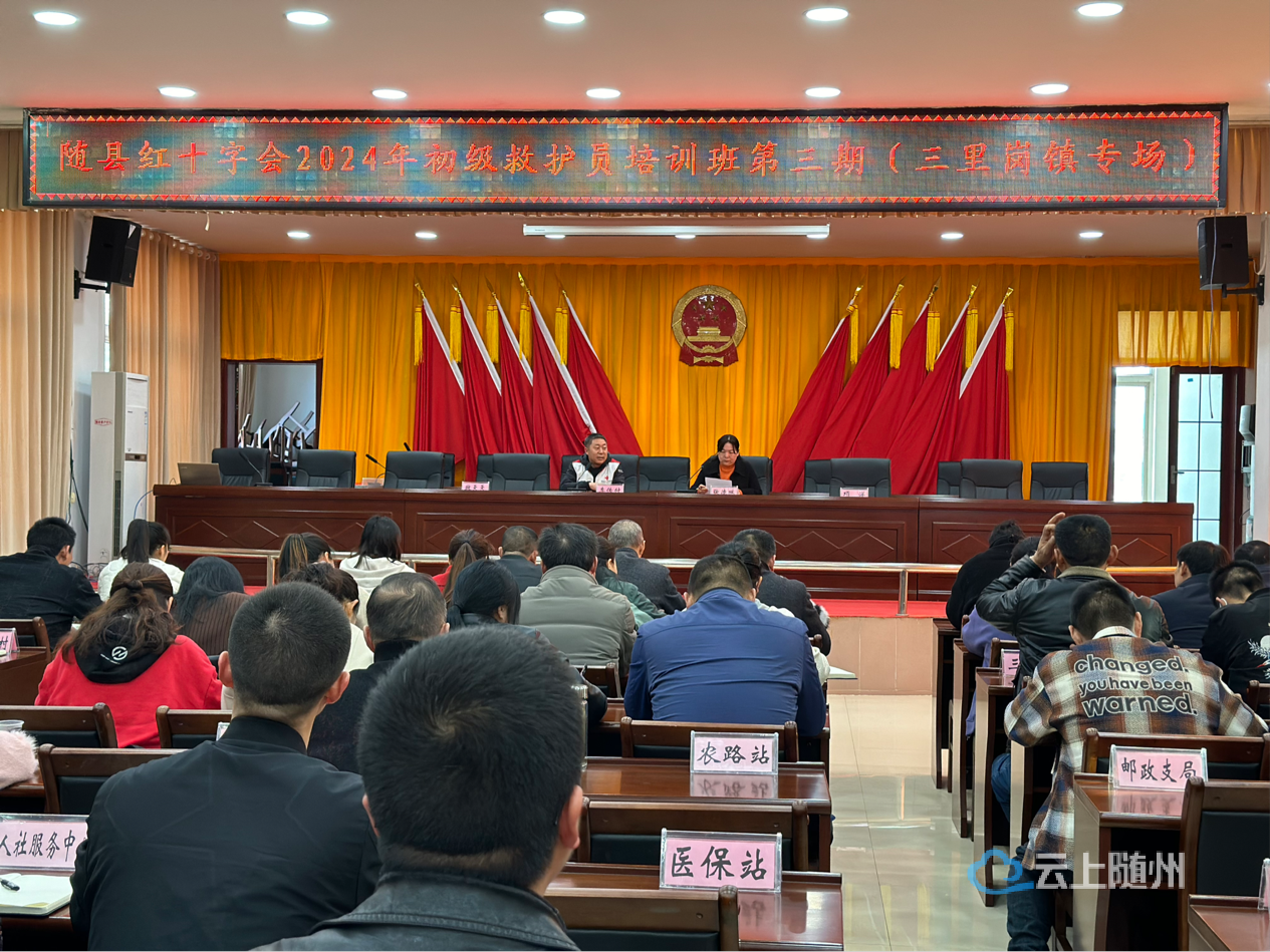 为广泛普及红十字应急救护知识与技能,提高三里岗镇干部职工自救互救和服务群众能力,3月28日,三里岗镇举办了随县红十字会2024年初级救护员培训班,培训邀请随县红十字会专家讲师进行授课,来自政府机关、各村(居)、镇直单位、学校的80余名干部职工参加了此次培训。随州市红十字会秘书长李传付出席开班仪式并作动员讲话。