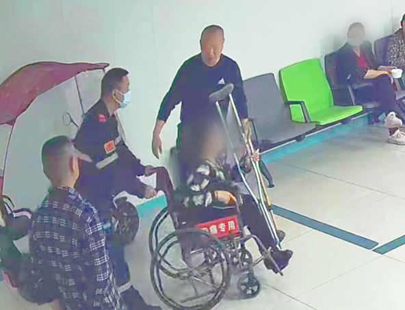 挂号、缴费、检查、等待结果……任泽龙推着患者辗转多个科室,直到就医完毕,又将患者平安送到电动车停放处。