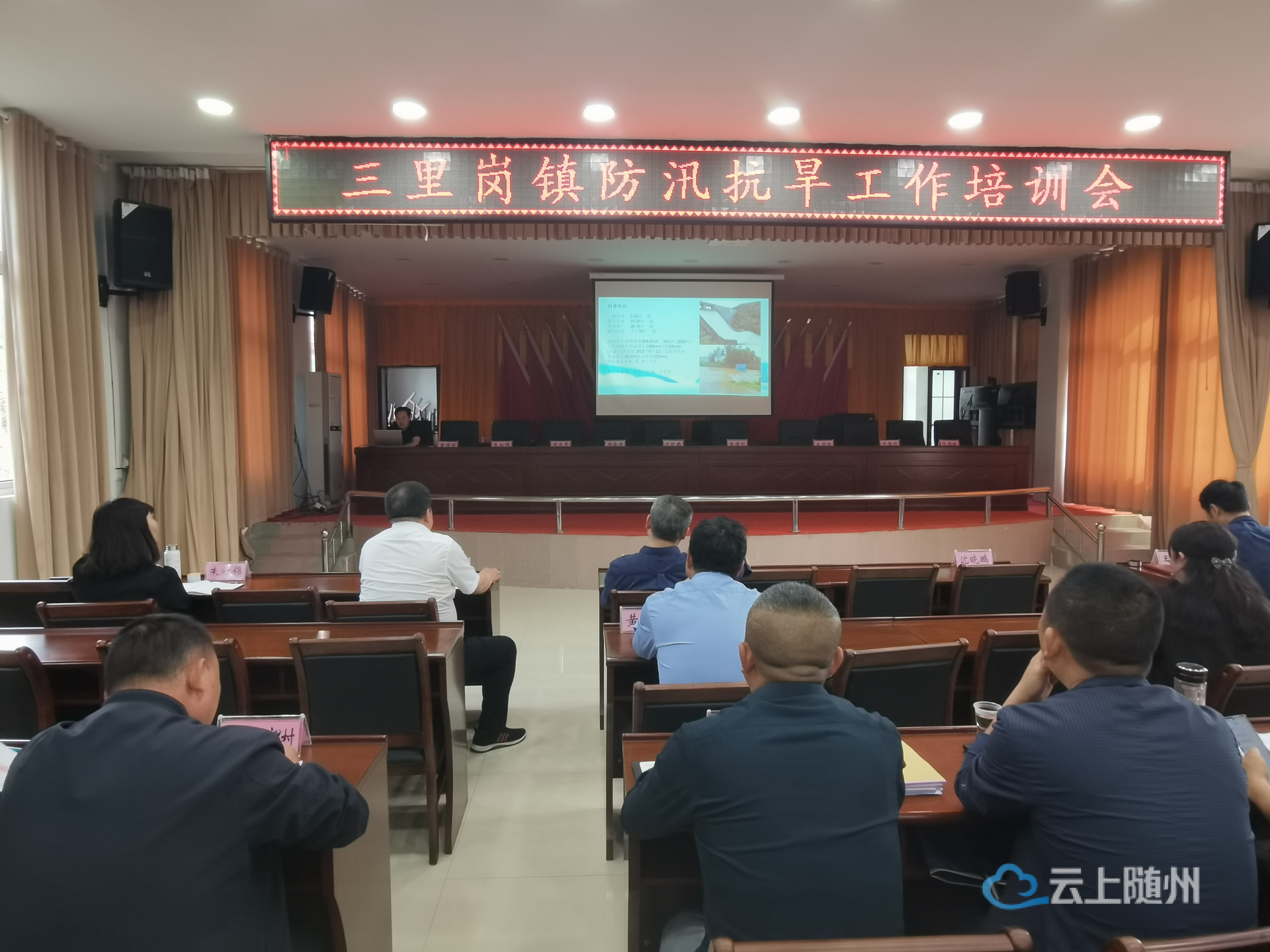 为进一步提升三里岗镇防汛抗旱应急处置能力和干部骨干业务水平;5月8日,由镇防指组织题为《防汛抗旱准备工作规范化讲解》的防汛抗旱业务知识在党政机关会议室开讲,来自镇直各部门、各成员单位、各村(居)防汛骨干等共100余人参加培训。