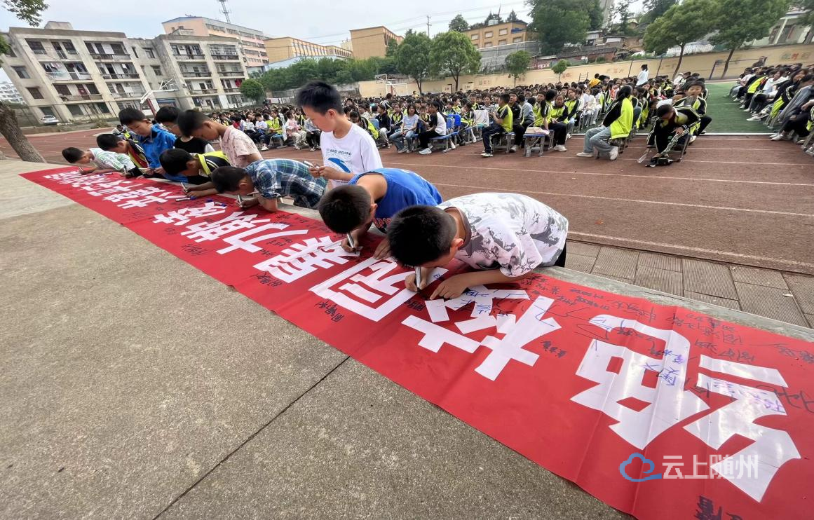 讲座结束后,学生在预防暴力欺凌横幅上签字并宣誓。