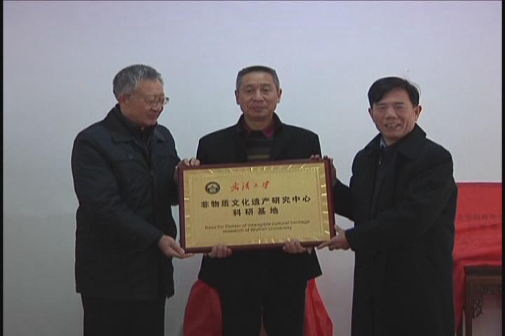 近日,武汉大学历史学院党委书记刘礼堂、科技考古研究中心主任张建民、非物质文化遗产研究中心科研办主任陈官涛一行来到我市曾侯乙编钟编磬文化有限公司,授予《武汉大学非物质文化遗产研究中心教研基地》、《武汉大学科技考古研究中心教研基地》两块科研名牌,创建了校企合作的新模式。