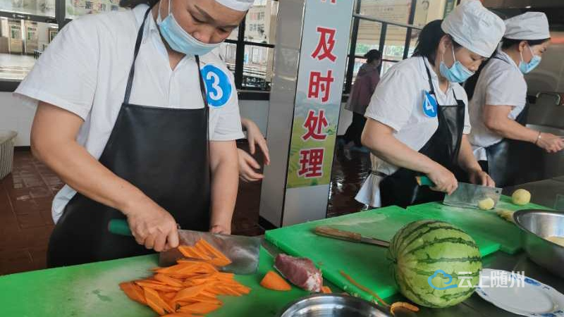6月12日下午,洪山镇一中第三届后勤厨艺大赛在学校食堂举行。此次比赛共有9位厨师同场竞技,厨师们根据学校食堂每日菜谱,按照抽签顺序烹饪。