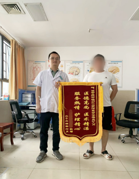 经过医护团队的努力,手术非常顺利,术后造影显示:颈内动脉瘤栓塞致密,载瘤动脉通畅,麻醉复苏后患者无任何并发症。经过医护团队的精心治疗、护理,患者完全治愈出院,并送来锦旗表达对医院和科室医护人员的感谢。