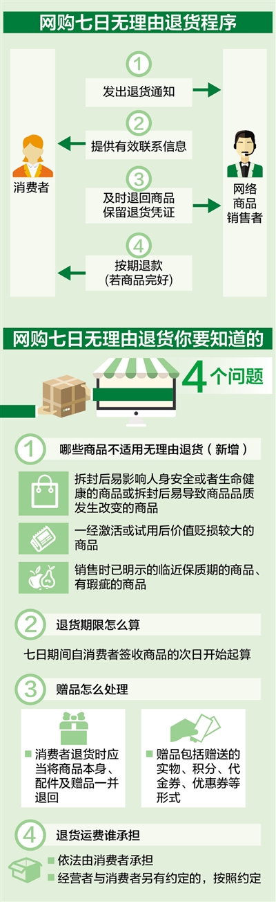 “七日从哪天开始算”“钱应该退到哪”“用了优惠券怎么办”“退货运费谁来担”……杨红灿介绍,办法明确规定了各方主体的规定动作、时间节点和延误责任。具体分为四步: