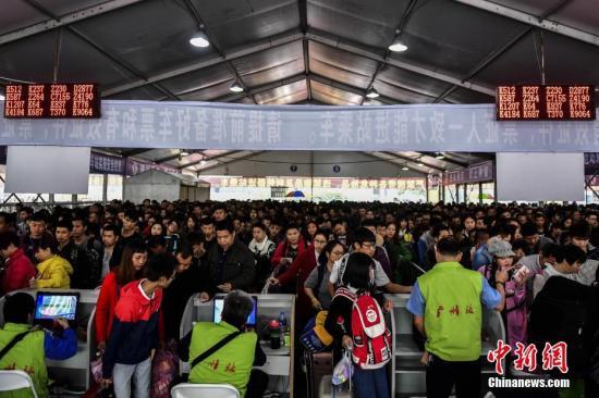 1月11日,广州火车站广场上,大批返乡旅客排队验票进站。今年的春运将从1月13日起到2月21日,共40天,广铁集团预计发送旅客达4700多万人,将加开临客482对。