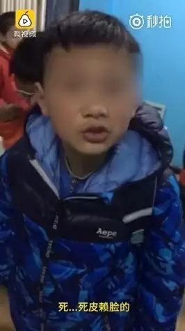 小男孩对老师的道歉要求置若罔闻,仍然不断冒着脏话,时间持续2分多钟。