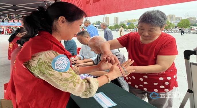 本次活动设置了舞台表演区、互动游戏区、筛查区、义诊区及礼品发放区,邀请了北郊街道楚风社区、桃园社区、孔家坡社区以及吾悦广场周边共计200余名老年朋友参加。