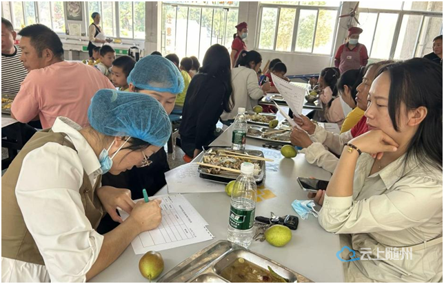 干净整洁的环境、规范的操作流程让家长们对孩子的饮食安全放心。工作人员还向家长们介绍了各操作间的功能、菜品的种类和营养搭配情况,让家长们更加清楚的了解孩子在学校的饮食状况。随后家长们在食堂就餐,亲身体验了孩子们的饮食。美味的饭菜得到家长们的肯定和称赞,填写《食堂满意度调查表》,对学校的就餐环境,工作人员的操作流程,菜品的新鲜度和营养搭配等给予了高度评价。