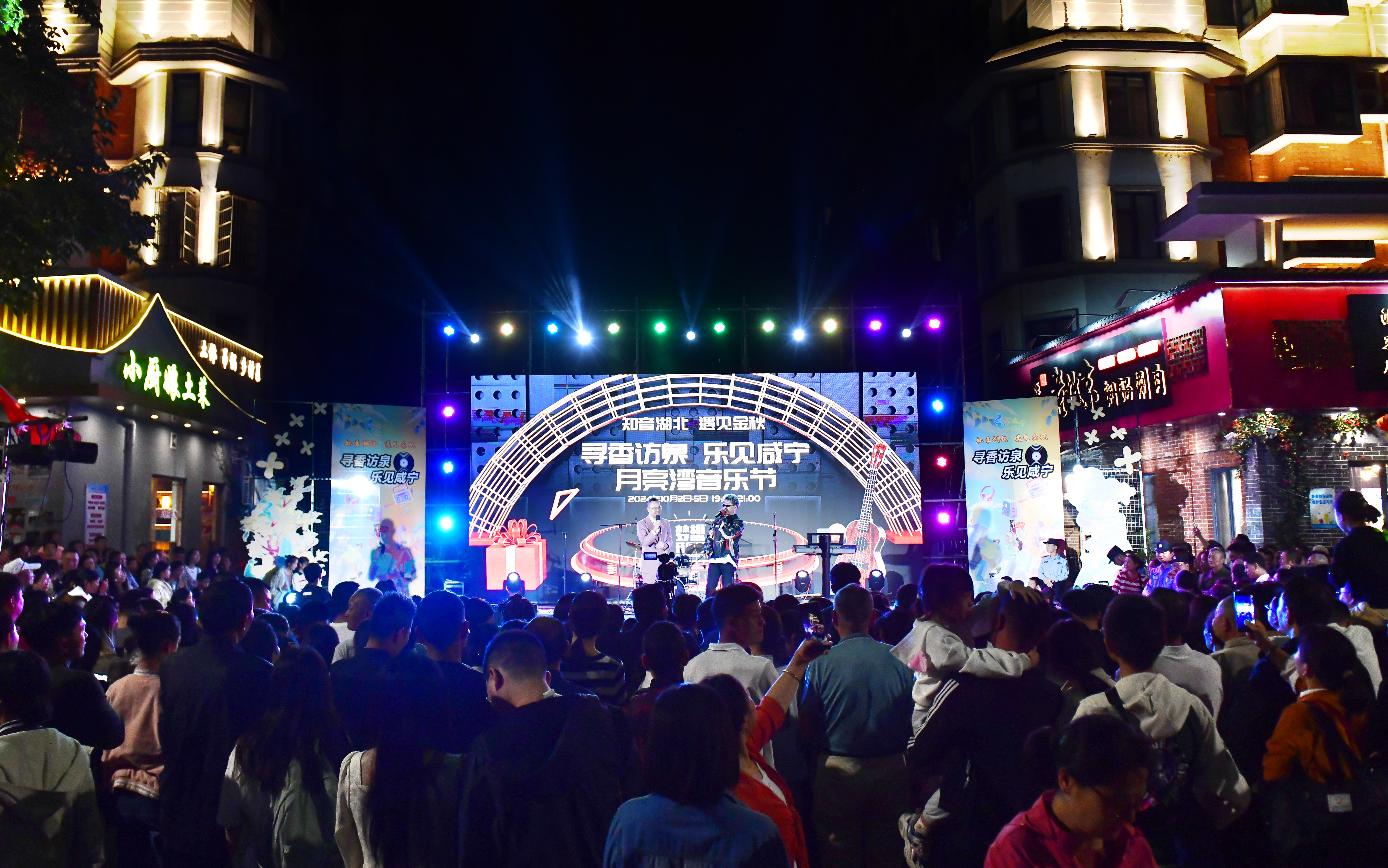知音湖北,遇见金秋。寻香访泉,乐见咸宁——从当晚6点起,月亮湾音乐节连续四晚在月亮湾路段上演。来自武汉高校乐队、市体育舞蹈团队、街舞团队等专场演出,行进式点燃了咸宁城区的热闹街景。