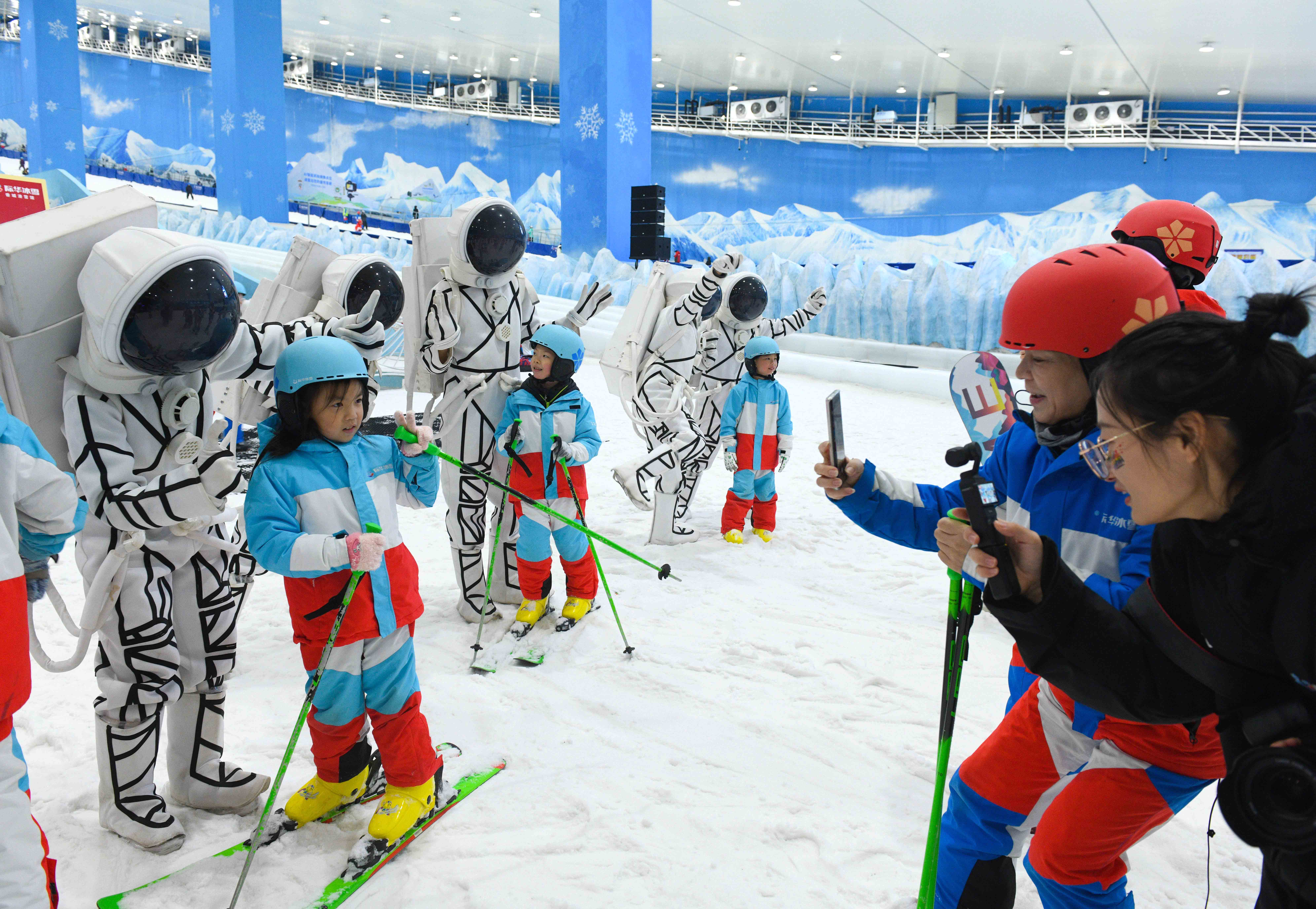 在际华园,“国庆潮趣 大有可玩”主题活动精彩不断。滑雪馆内,游客们热情参与星际穿越、星球魔法嘉年华、太空演艺巡游SHOW、冰雪运动会等多种活动,畅享冰雪乐趣;