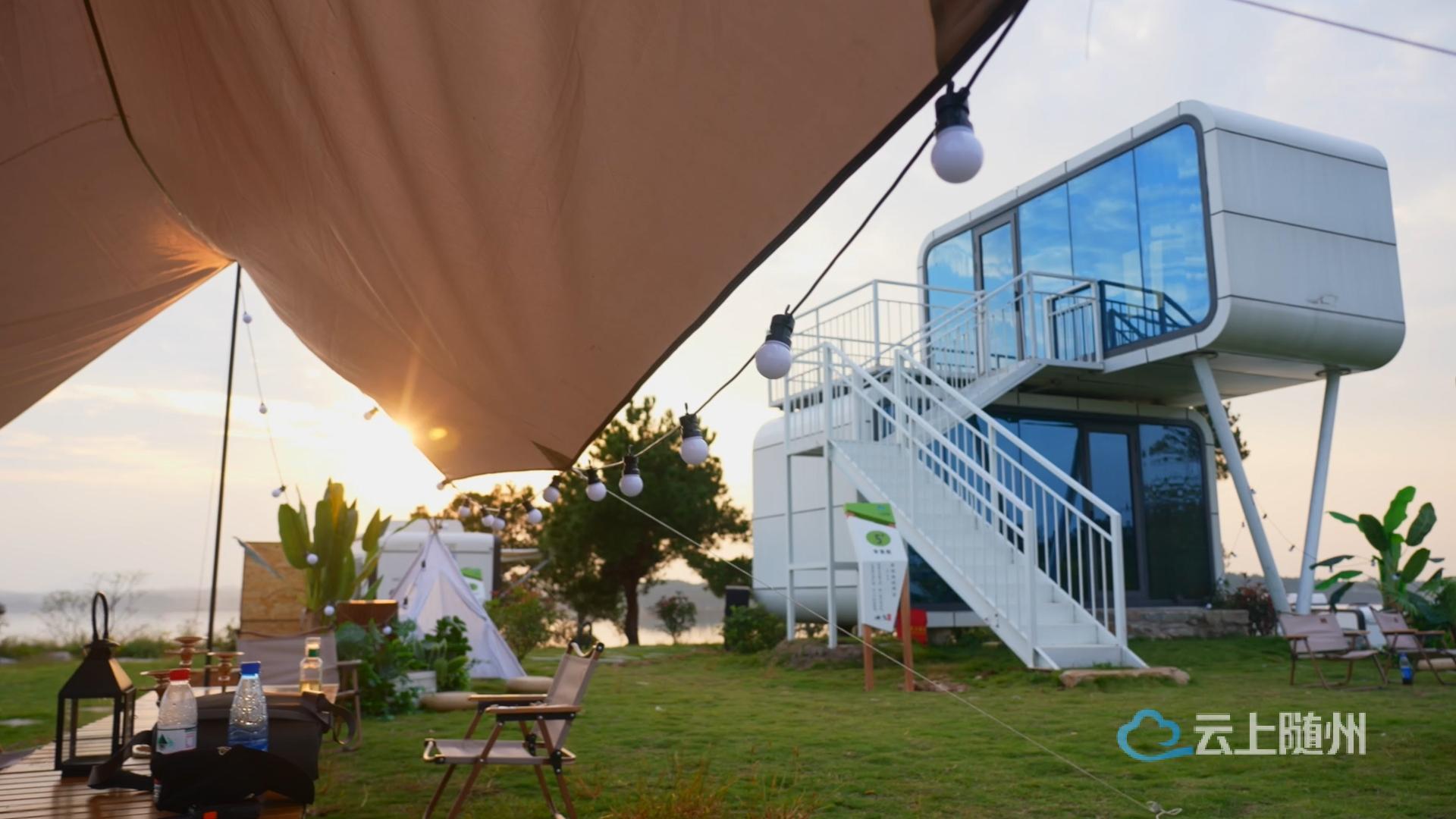 【同期声】月光海·渔火露营景区负责人 杨冰彬:“营地规划建设房车区、渔火区、帐篷区、星空区等八个区,设有环岛游步栈道、房车营地,共建设43个大项,180余个子项,涵盖地标门、水寨区、服务区、房车区、渔火区、休闲区、帐篷区、星空区、停车区、环岛栈道等核心项目,形成“一心一带多组团”空间布局结构。游船、烧烤、唱k等娱乐活动丰富了游客的体验感,很多游客都慕名前来我们“露营地”打卡。我们的客房每天都被提前预定爆满,烧烤食材也一售而空,我们真切地感受到了大家对于“渔火露营”的认可,也感受到了对户外露营的喜爱。渔火露营营地国庆期间正式营业,受到了不少游客追捧。营地提供帐篷、天幕等露营设备,游客也可携带露营装备,自行搭建。营地还打造了冲式卫生间以及淋浴间,方便游客生活游玩。”