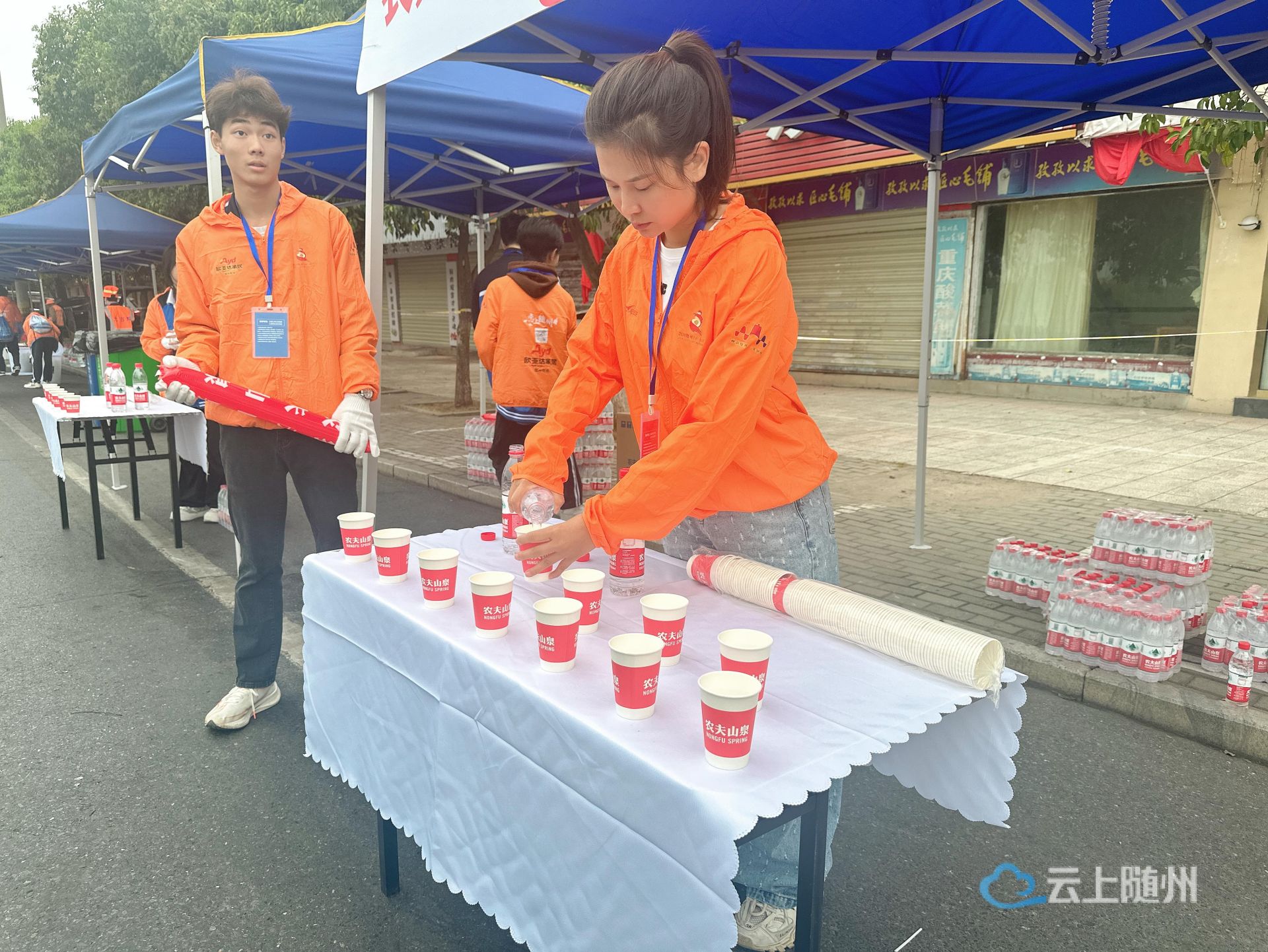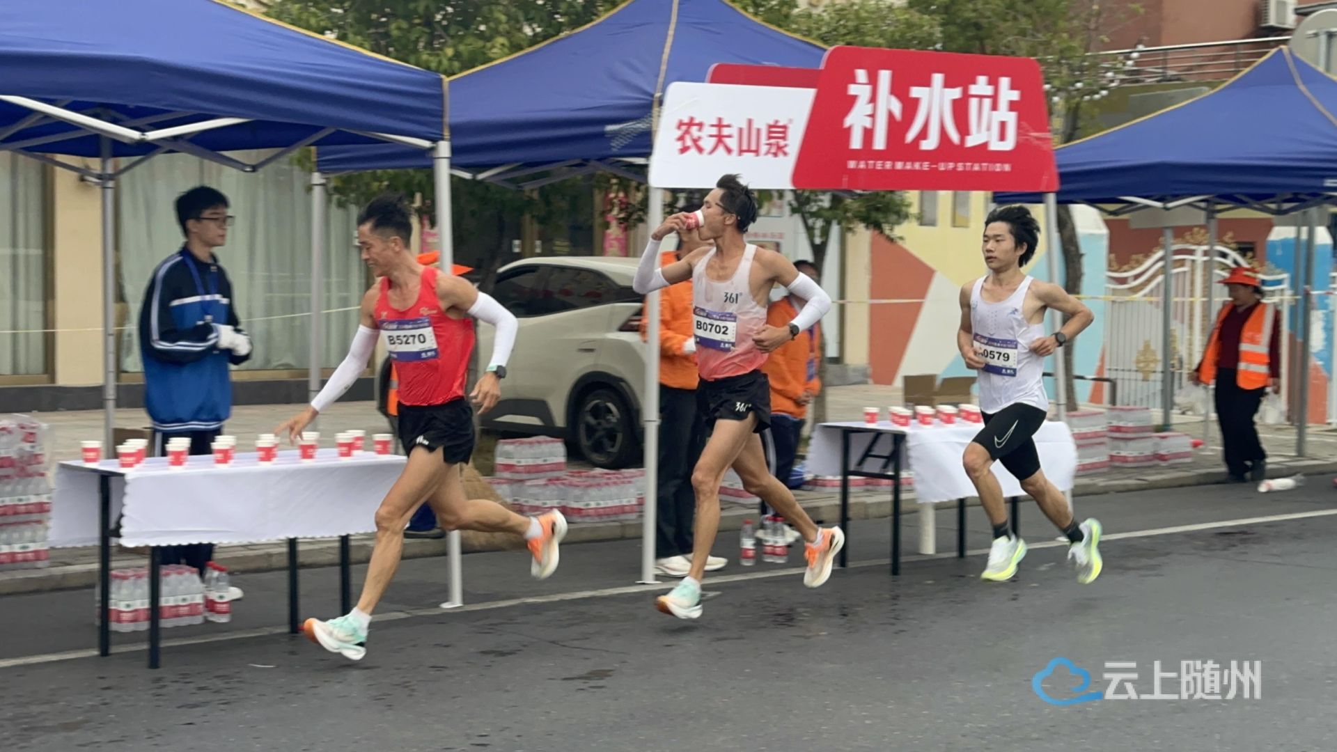 随着发令枪响,马拉松正式拉开帷幕。赛道上,实中志愿服务的老师们用坚定的目光、温暖的笑容为每一位跑者指引方向;在补给站,迅速、准确地为跑者递上水、食物,用行动诠释着“服务至上”的精神。
