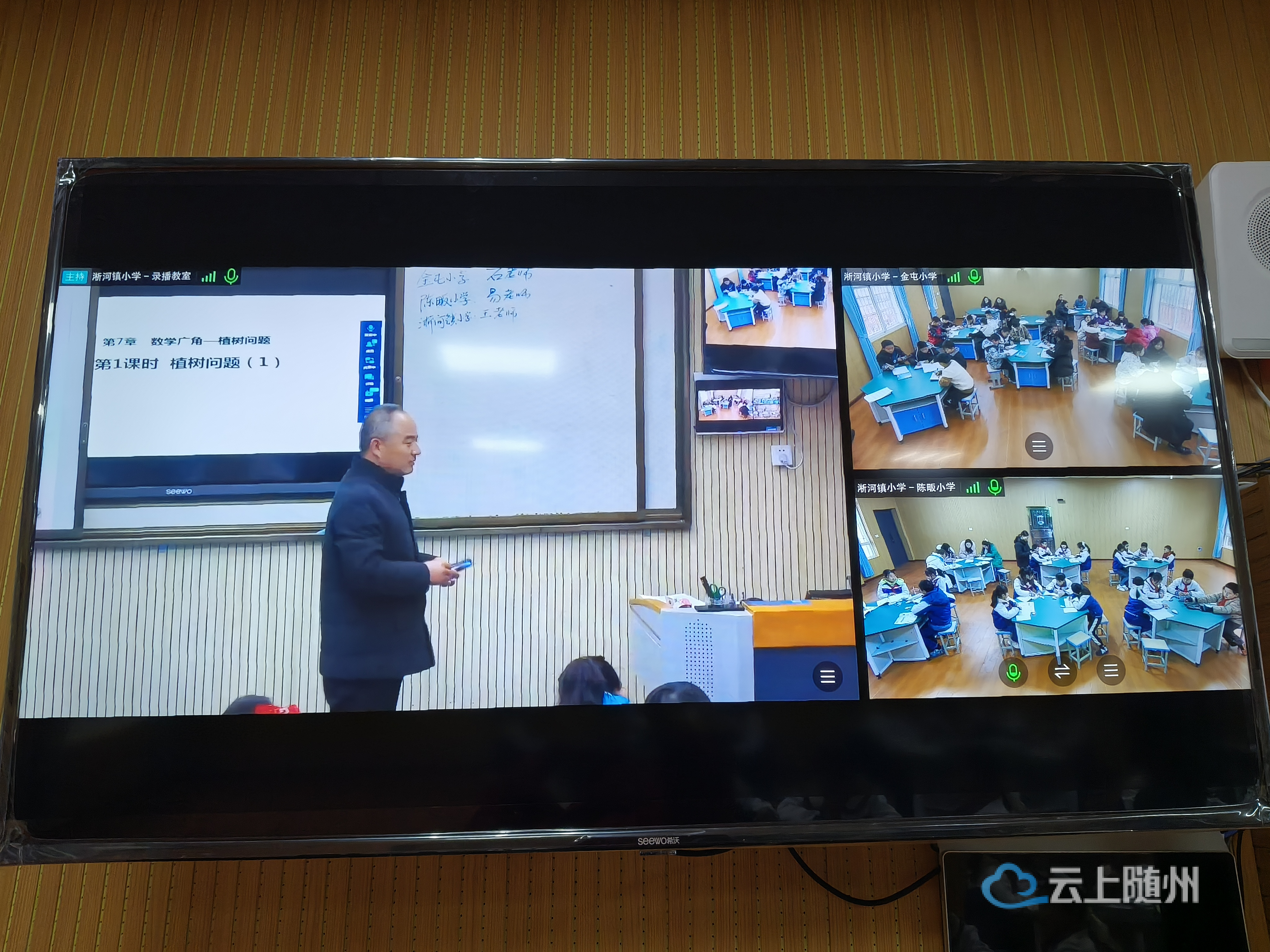 上午9:40,同学们满怀期待地开启了这场特殊的学习之旅。通过先进的直播技术,淅河镇小学的王斌鹏老师生动形象地讲授了五年级上册植树问题这一课。屏幕另一端,金屯小学和陈畈小学的孩子们全神贯注地听讲,积极参与互动,课堂气氛热烈。