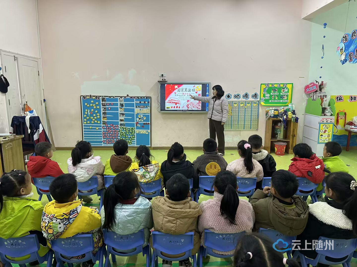 12月4日上午,洪山镇中心幼儿园开展了宪法宣传教育活动。