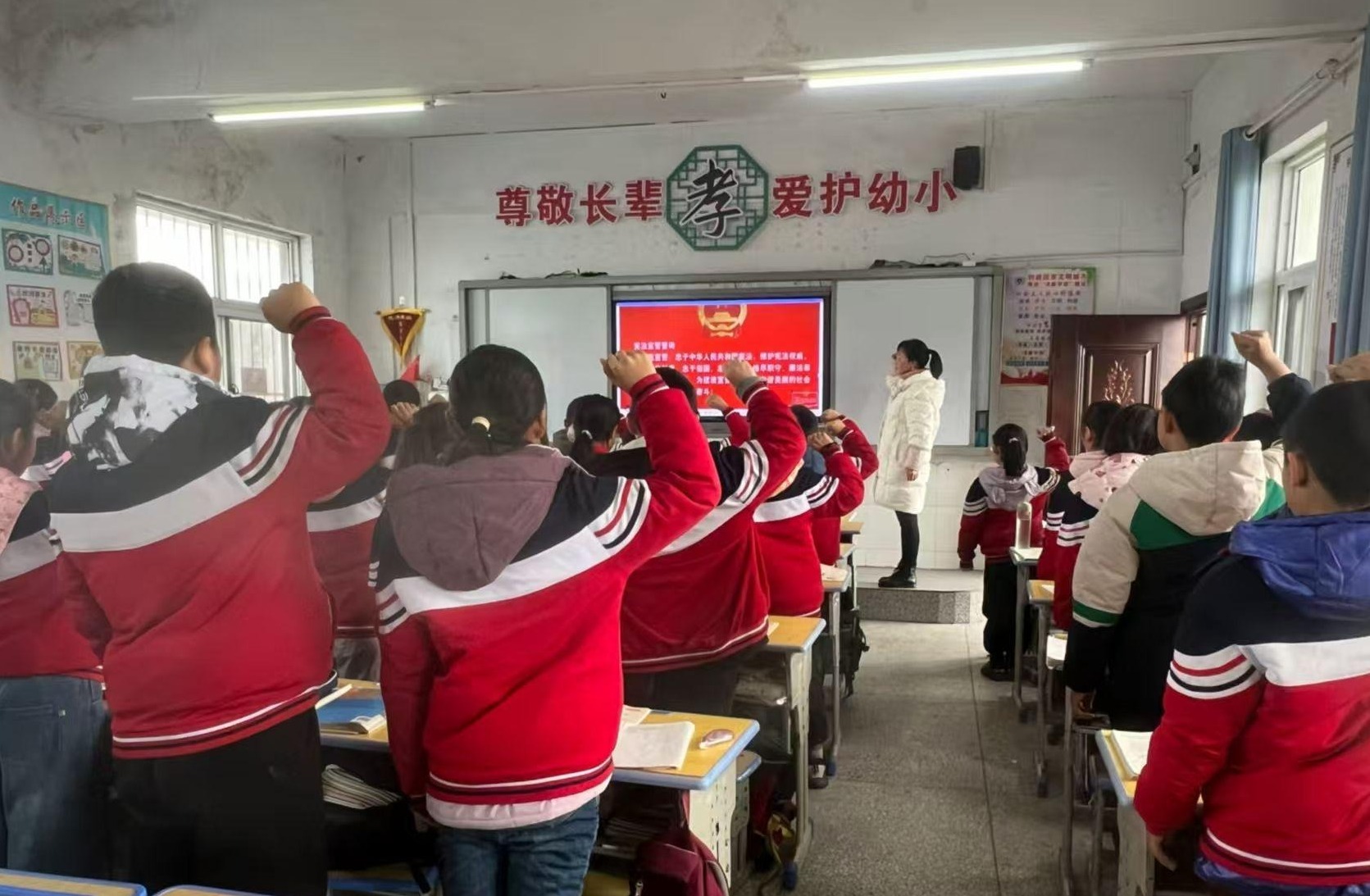 活动期间,各班级利用晨读时间开展了宪法宣誓活动。学生们在老师的带领下,右手握拳,庄严宣誓:“我立志成为有理想、有道德、有文化、有纪律的社会主义公民,忠于中华人民共和国宪法和法律……”在庄严的宣誓声中,宪法精神在学生们幼小的心灵中生根发芽。