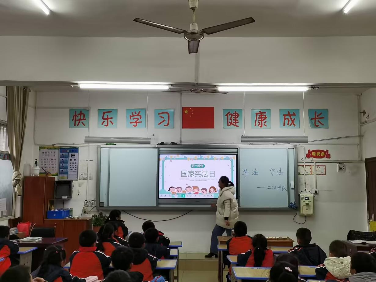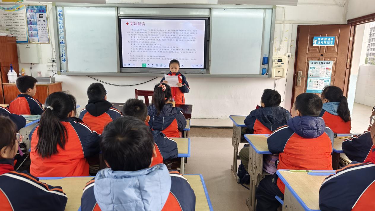 12月4日是第十一个宪法日,曾都区五眼桥小学在这一天开展了丰富多彩的宣传教育活动,学唱《宪法伴我们成长》就是其中一项。活动当天,各班利用晨读时间进行了宪法条例的诵读,班主任还根据学生的年龄特征开展了不同形式的主题班会:知识竞答、视频讲解、案例分析等让学生的学习热情十分浓厚。