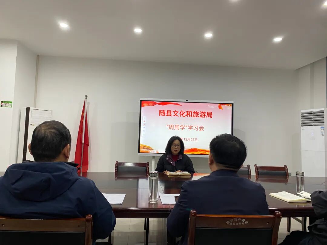 按照市委统一部署,严格落实县委组织部《关于在全县开展“周周学”的通知》精神,12月27日下午,随县文化和旅游局组织召开首次“周周学”活动,党组书记、局长秦学主持会议,全体机关干部及二级单位负责人参加学习。
