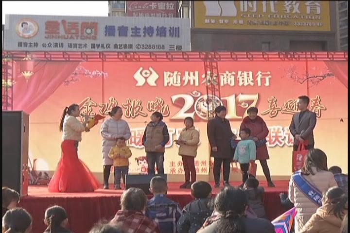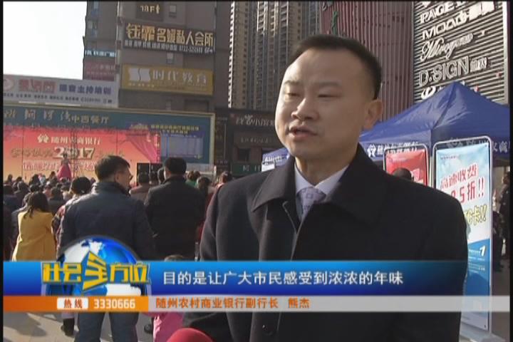 (采访:随州农村商业银行副行长 熊杰)随州农商银行举办这次金鸡报晓喜迎春,送春联文艺汇演,有奖赠签活动。目的是让广大市民感受到浓浓的年味,交流感情。同时感谢社会各界朋友。多年来对随州农商银行的支持和关心。