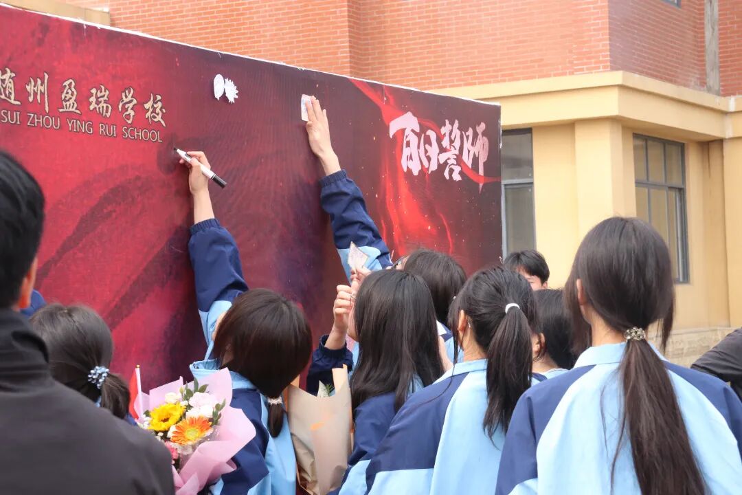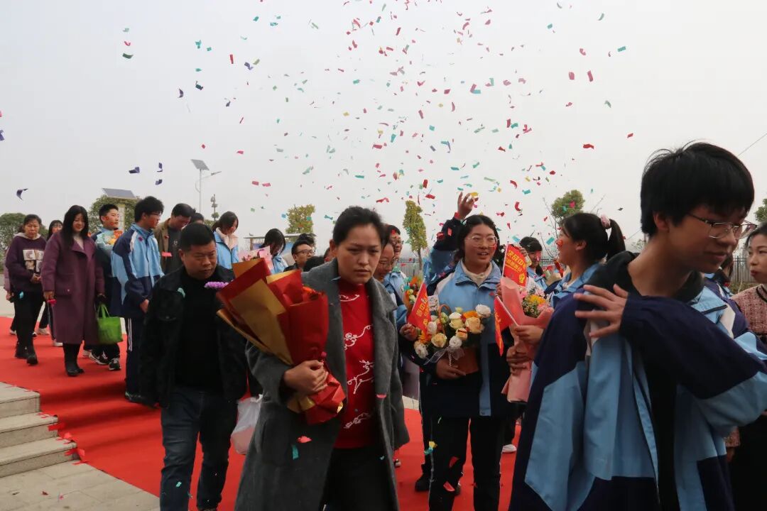 鱼跃龙门,跨越成功。各班高举班旗,踏过红毯,跨过成功门。校领导、老师、家长为同学们呐喊助威、击掌加油。场面激动而又热烈。全体师生纷纷在心愿墙上郑重签下自己的姓名与期望,一笔一划,一撇一捺,既是承诺,亦是鞭策,汇聚成迈向人生新起点的决心。