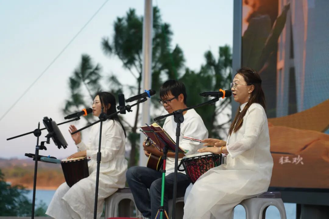 草坪音乐会上,周边市民结伴而来,在夕阳下齐声合唱;
