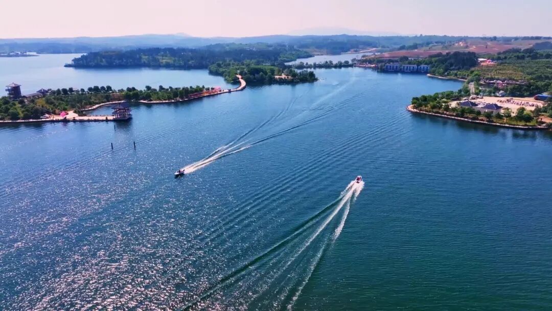 随州市文旅产业发展大会上,水上摩托艇激情四射,引得游人阵阵喝彩;