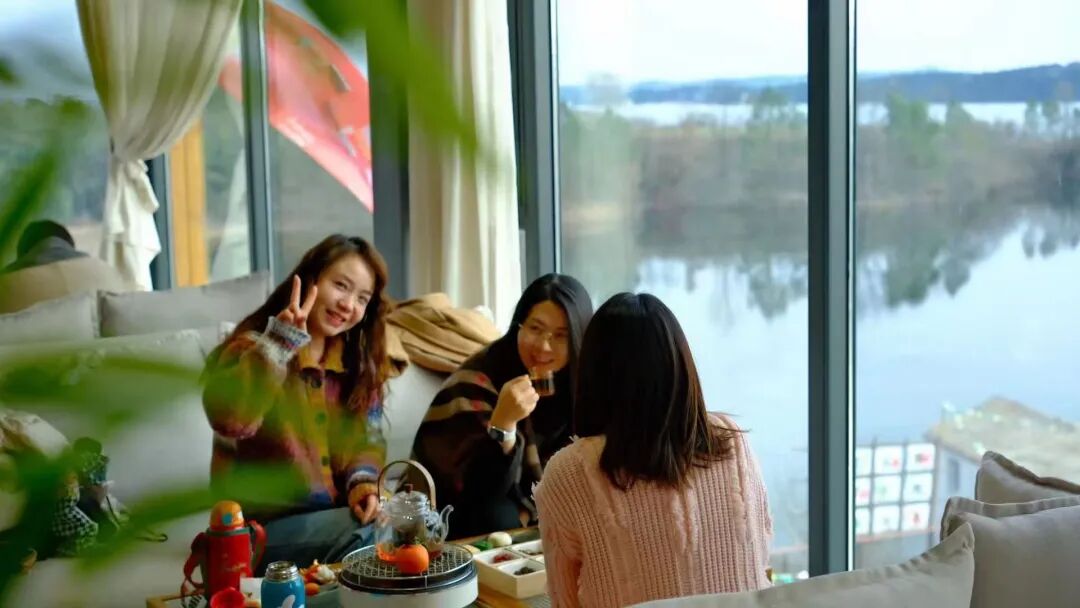 难得浮生半日闲,月光茶园里三五好友相聚。(月光茶园景区供图)