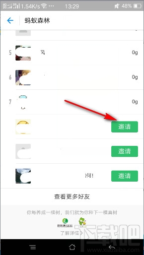 2.然后点击进入好友页面,你还可以邀请自己的好友一起来呢!让我们一起呼吁绿色低碳吧!