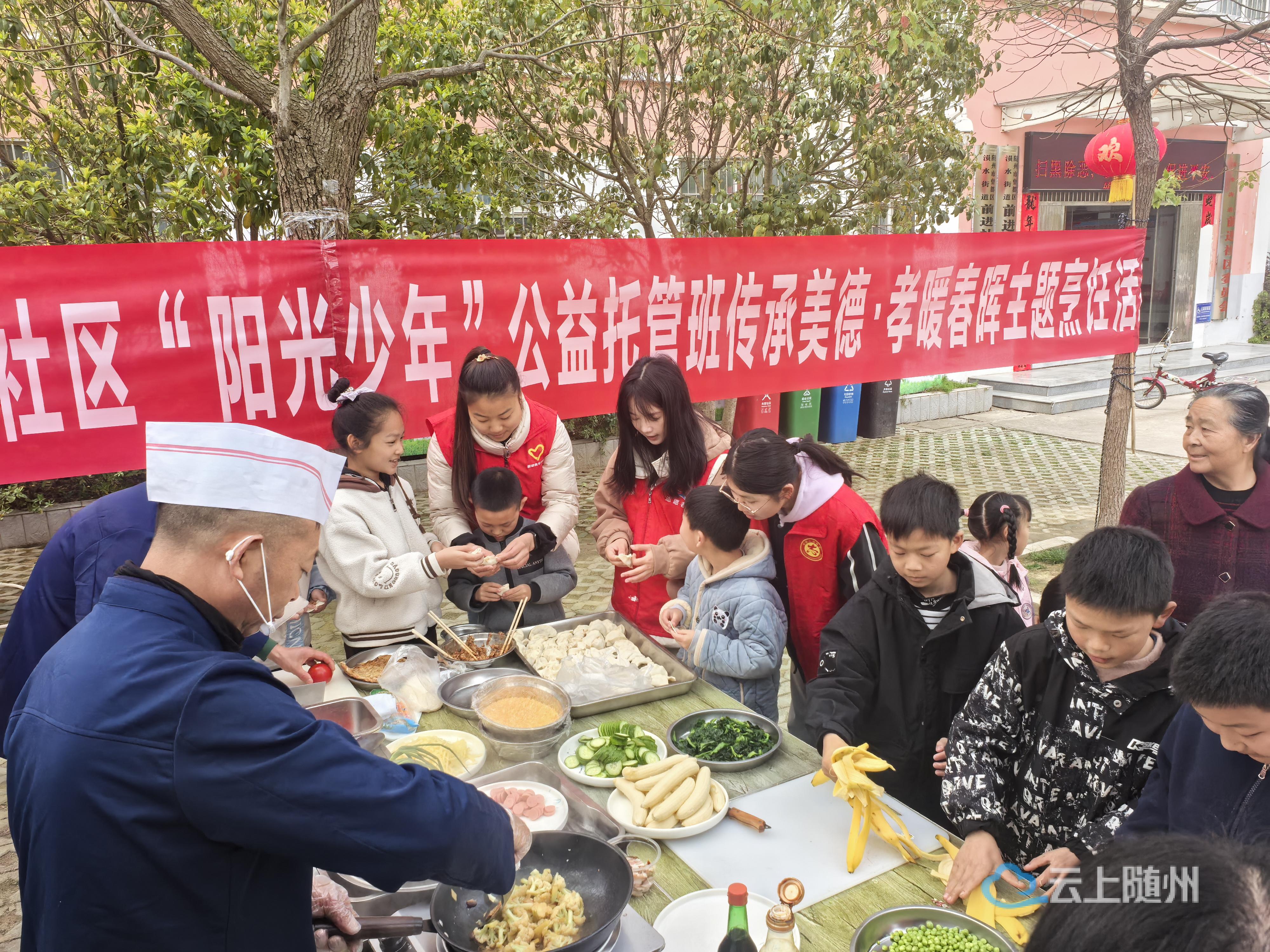 3月29日,曾都团区委联合涢水街道在前进社区“阳光少年”公益托管班创新开展“传承美德·孝暖春晖”主题活动,让孩子们亲手参与烹饪,在实践中收获对劳动的理解和感悟,传递对长辈们的感恩之情。