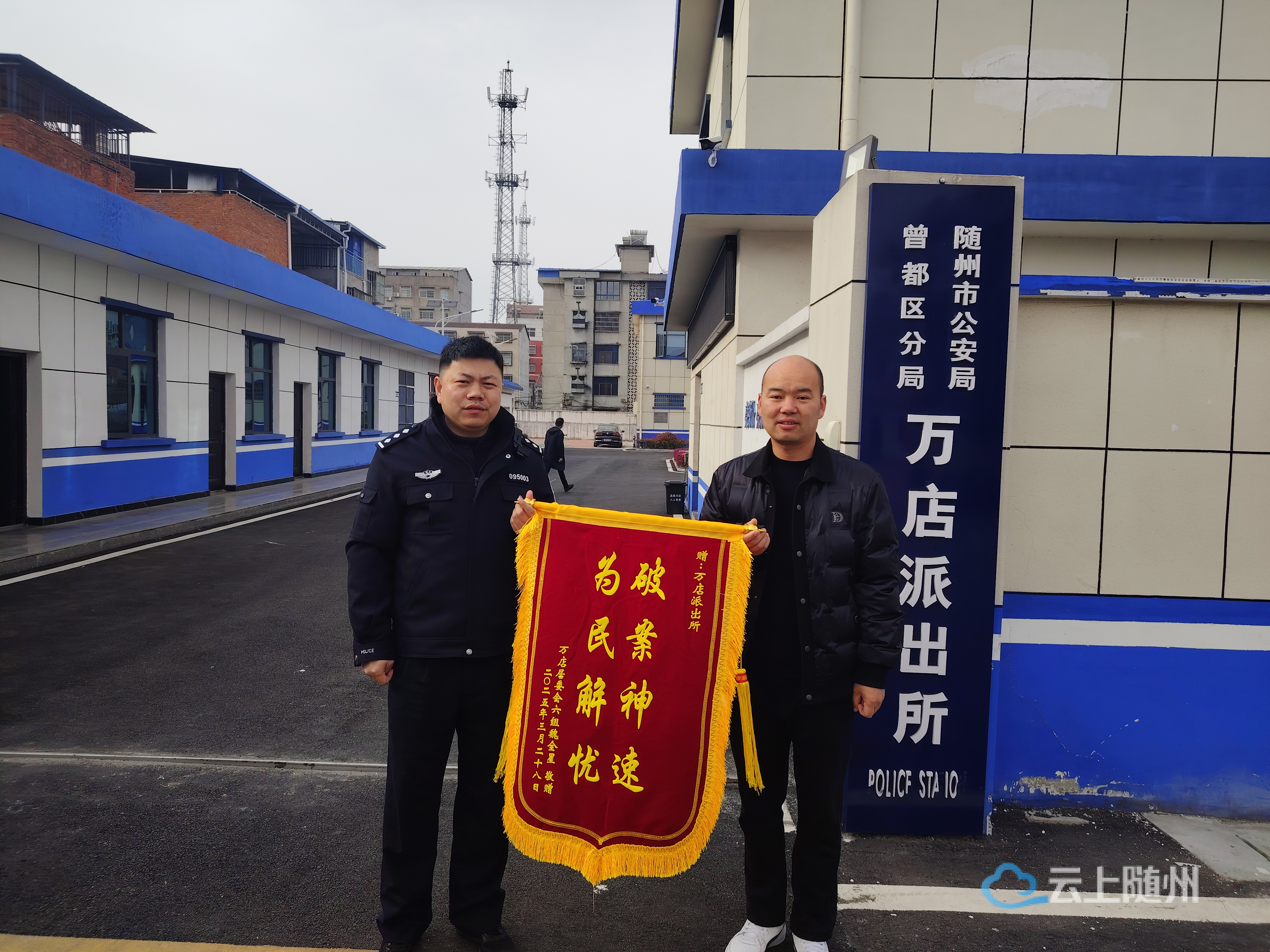 2025 年 3 月 30 日清晨,朝阳初升,随州市曾都区万店镇居民卫先生携家人满怀敬意,专程赶赴万店派出所。他们将一面绣有 “雷霆出击护民安 真心为民显担当” 的锦旗,郑重地交到民警手中。锦旗上的烫金大字在晨光下闪耀夺目,背后是一段警民情深的暖心故事。