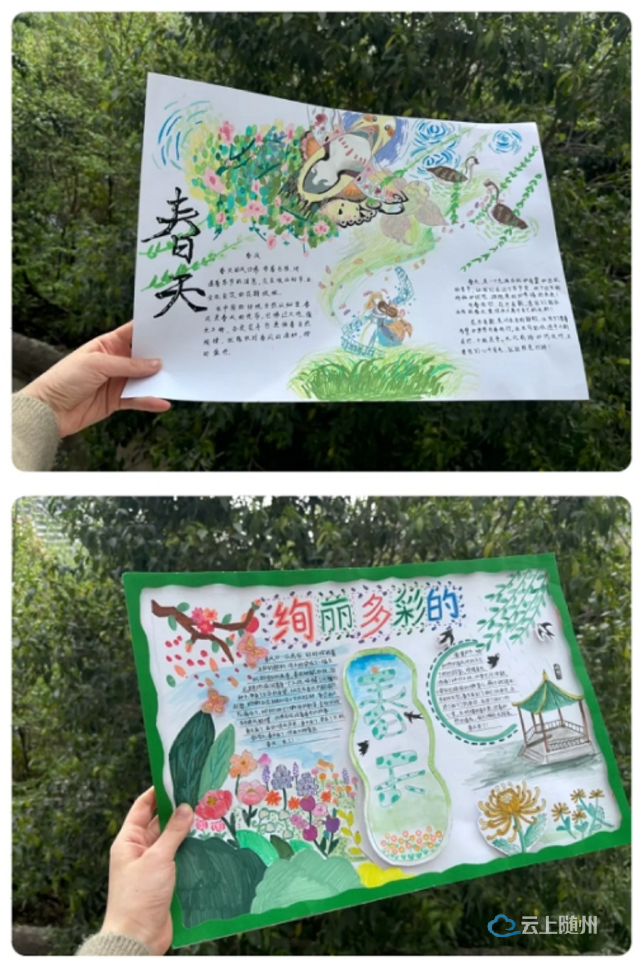六年级:春天快报。让六年级学生绘制春天主题手抄报,既能加深对春天的感悟,又能提升绘画、文字排版、资料收集整合等能力,增强团队协作与审美素养。