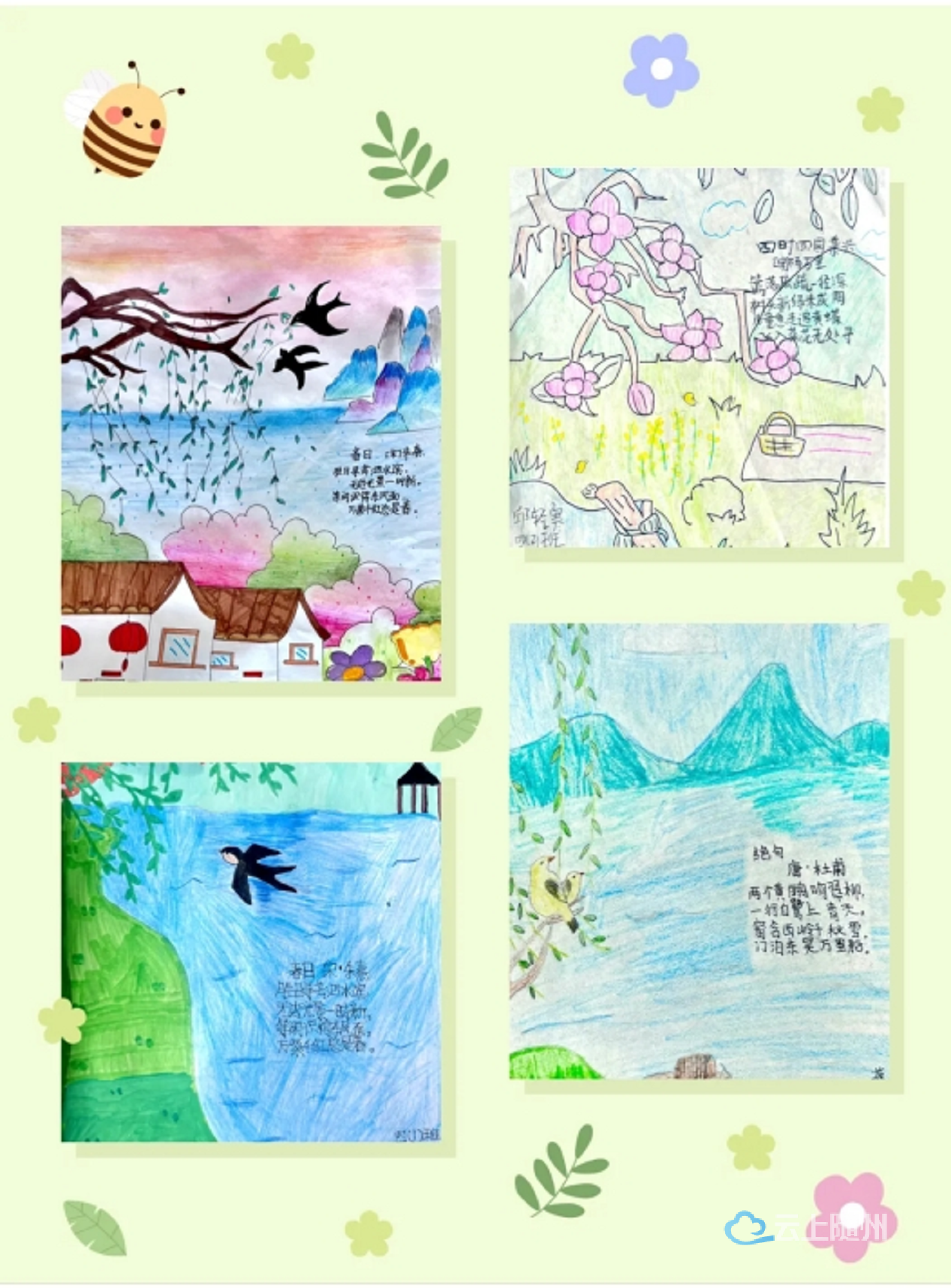 4月10日,曾都区文峰塔小学美术组开展以“画里春光,童梦绽放”为主题画展项目式学习。