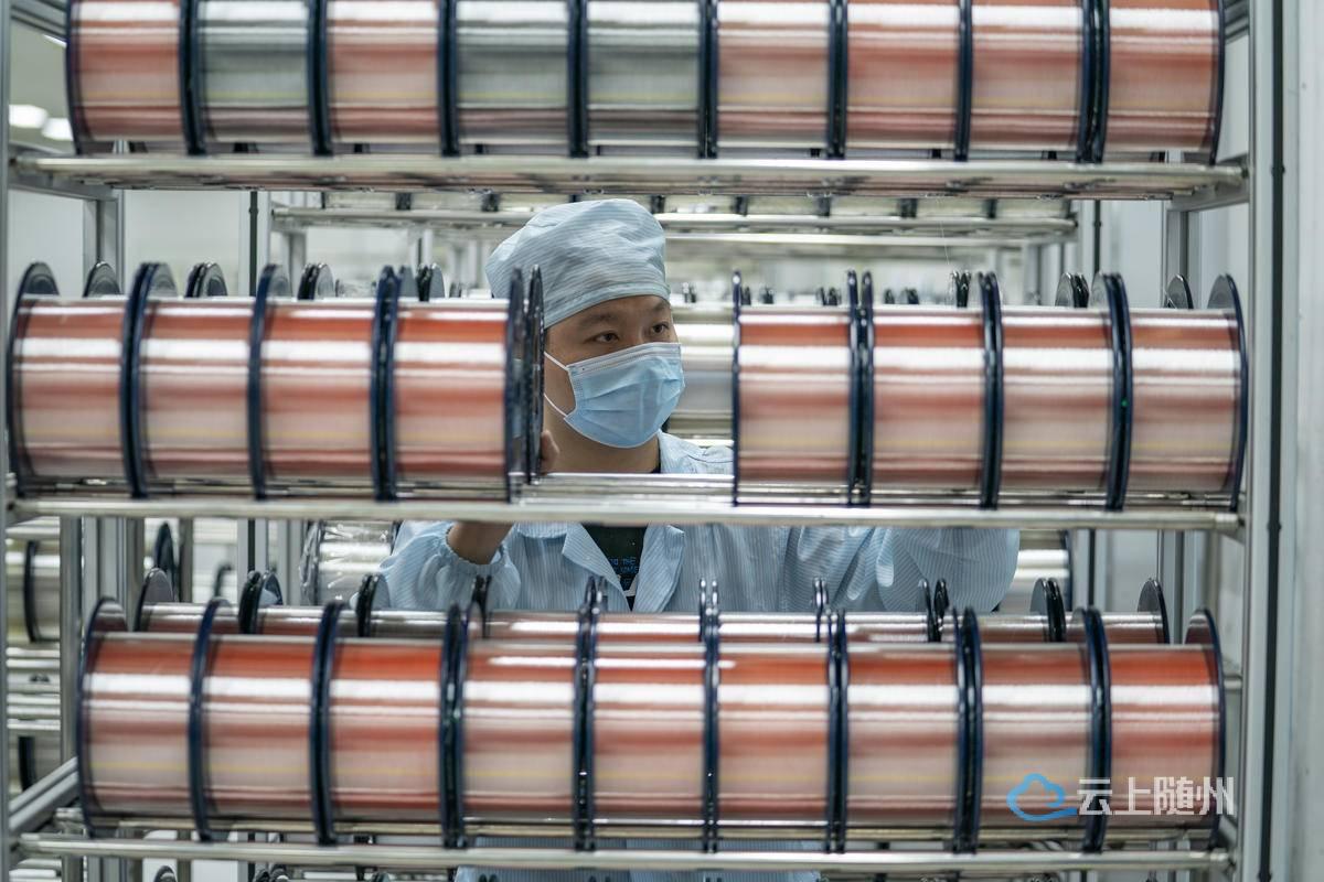 长飞光纤光缆股份有限公司车间,员工在仔细检查、测试即将出厂的多模光纤。(湖北日报全媒记者 魏铼 摄)