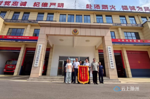 5月21日上午,洪山镇几名群众携带一面书写着“救火神速真情为民”的锦旗,赶到洪山消防救援站进行赠送,感谢消防员迅捷高效出警,为其避免了更大损失。